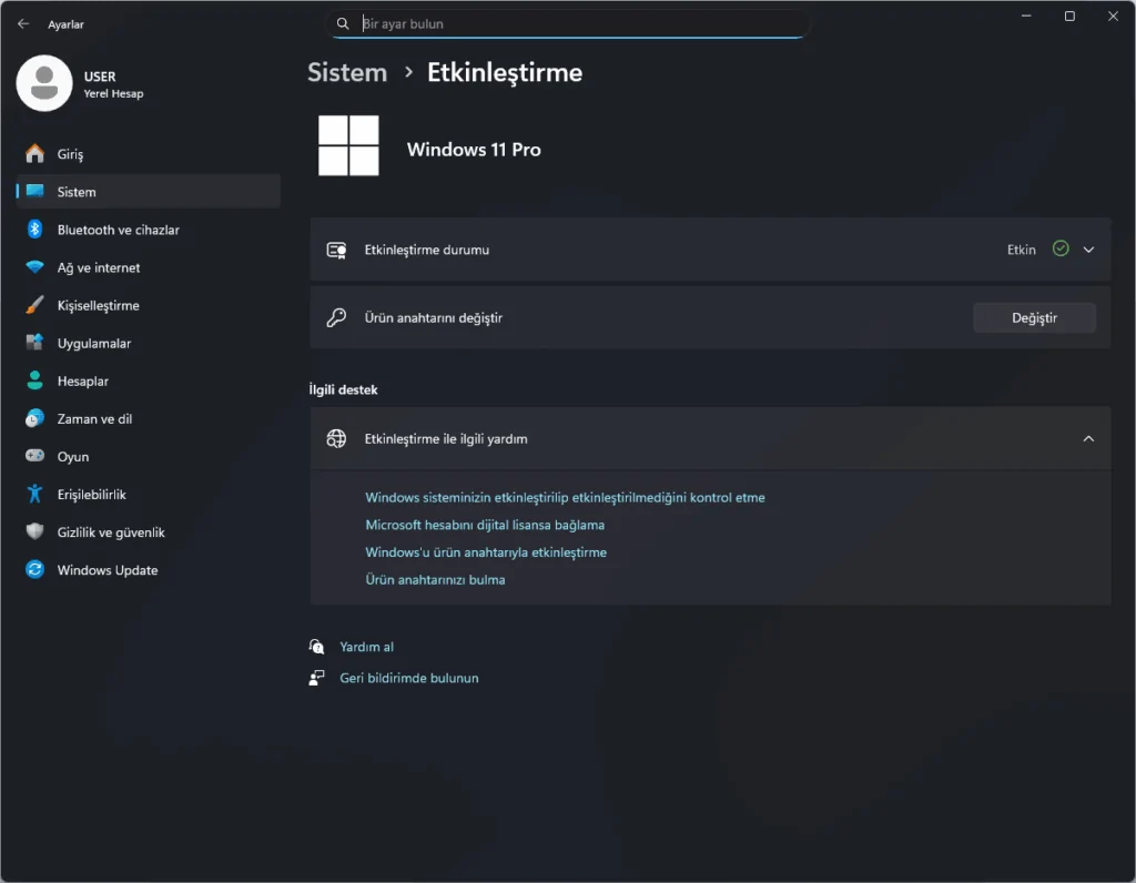 Windows 11 Pro kurulumu ve windows 11 etkinleştirme işlemi sırasında,